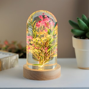 Epoxy resin lamp, real flower night light, unique bedroom decor