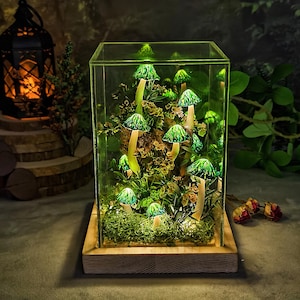 Green Forest Handmade Mushroom Lamp, Whimsigoth Decor, Bedroom Decor, Art Deco Lamp, Cottagecore