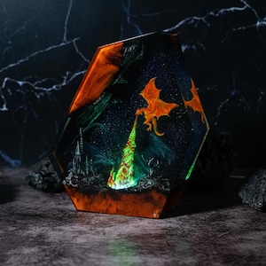 Wolf Moon Resin Lamp • Handmade LED Night Light with Northern Forest Scene • Rustic Woodland Gift for Home Décor